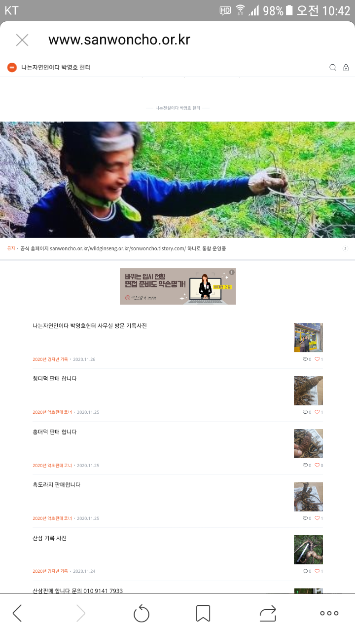| 산삼감정 사진 박영호헌터 (2) | 2020.11.29 |
