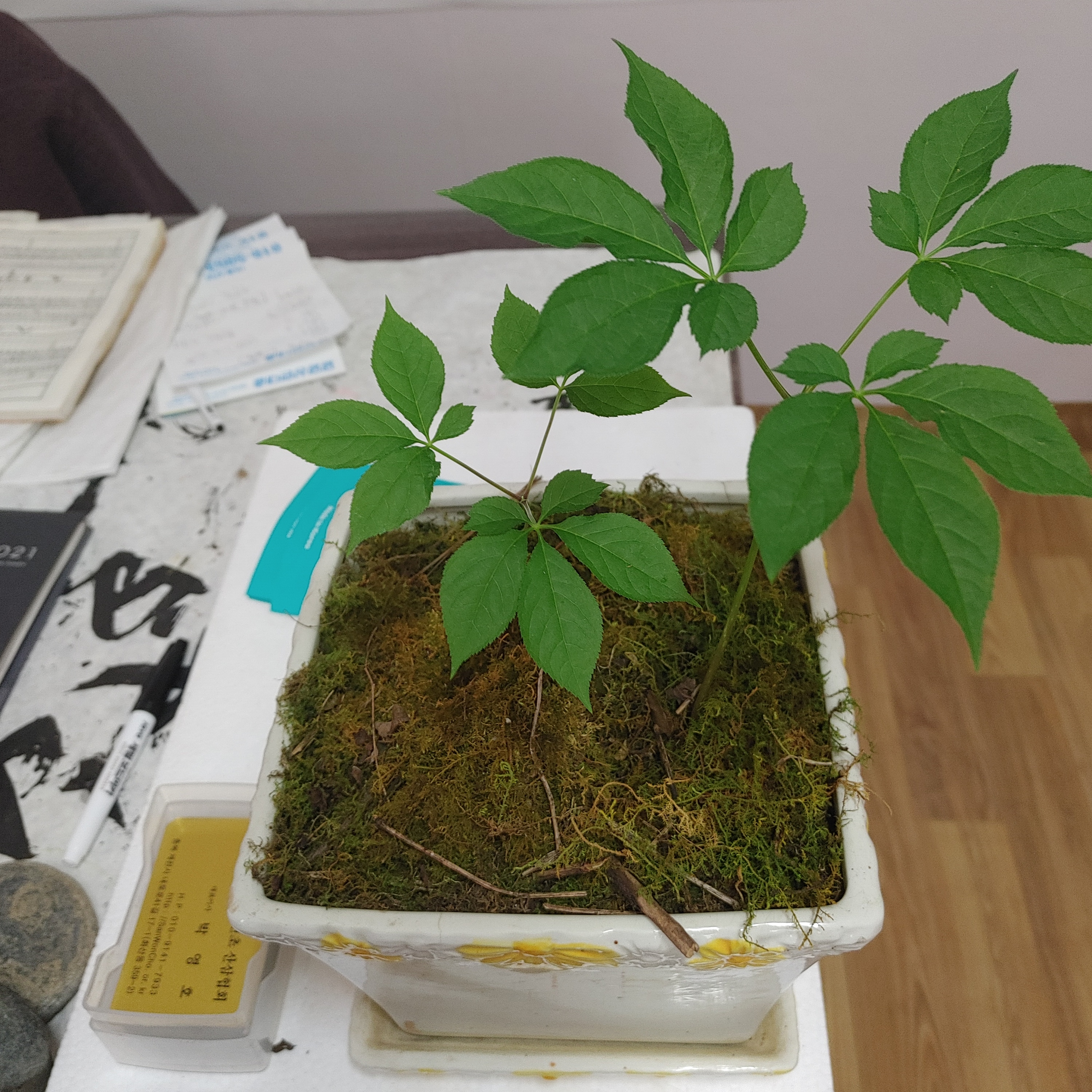 산삼화분에 산삼꽃이 피었습니다