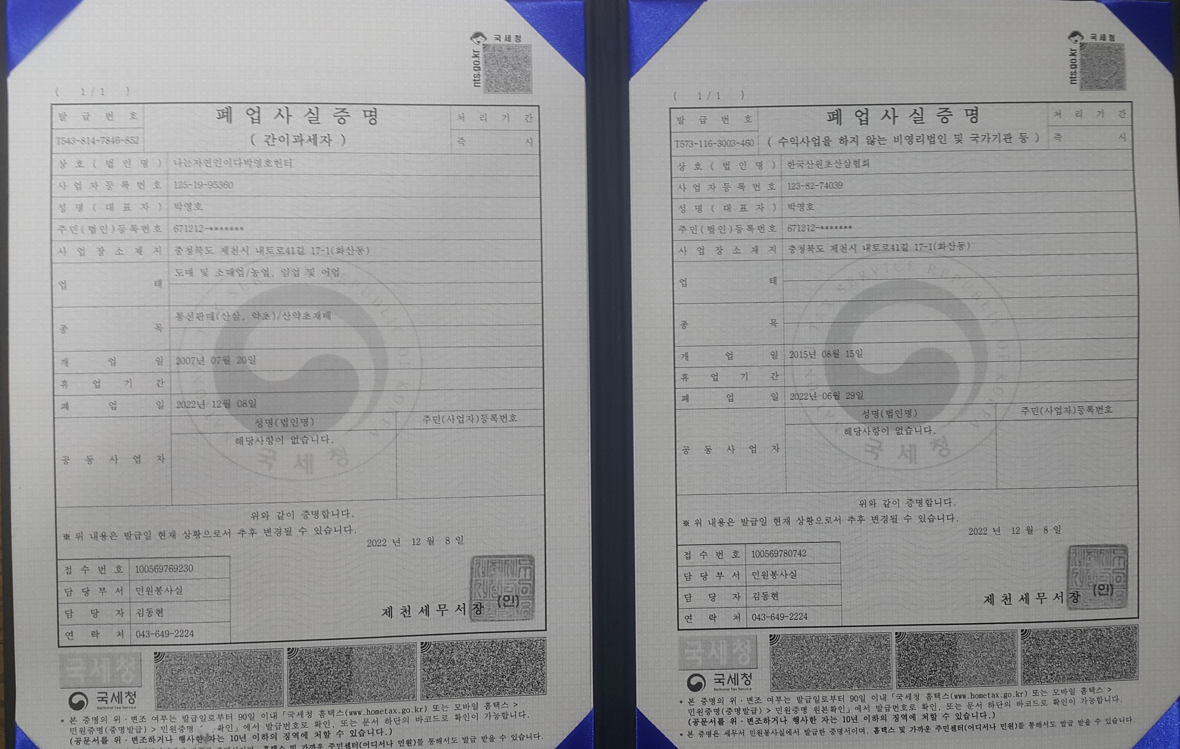 2022년 12월 8일 세무서 폐업 사실 증명서 기록으로 남깁니다