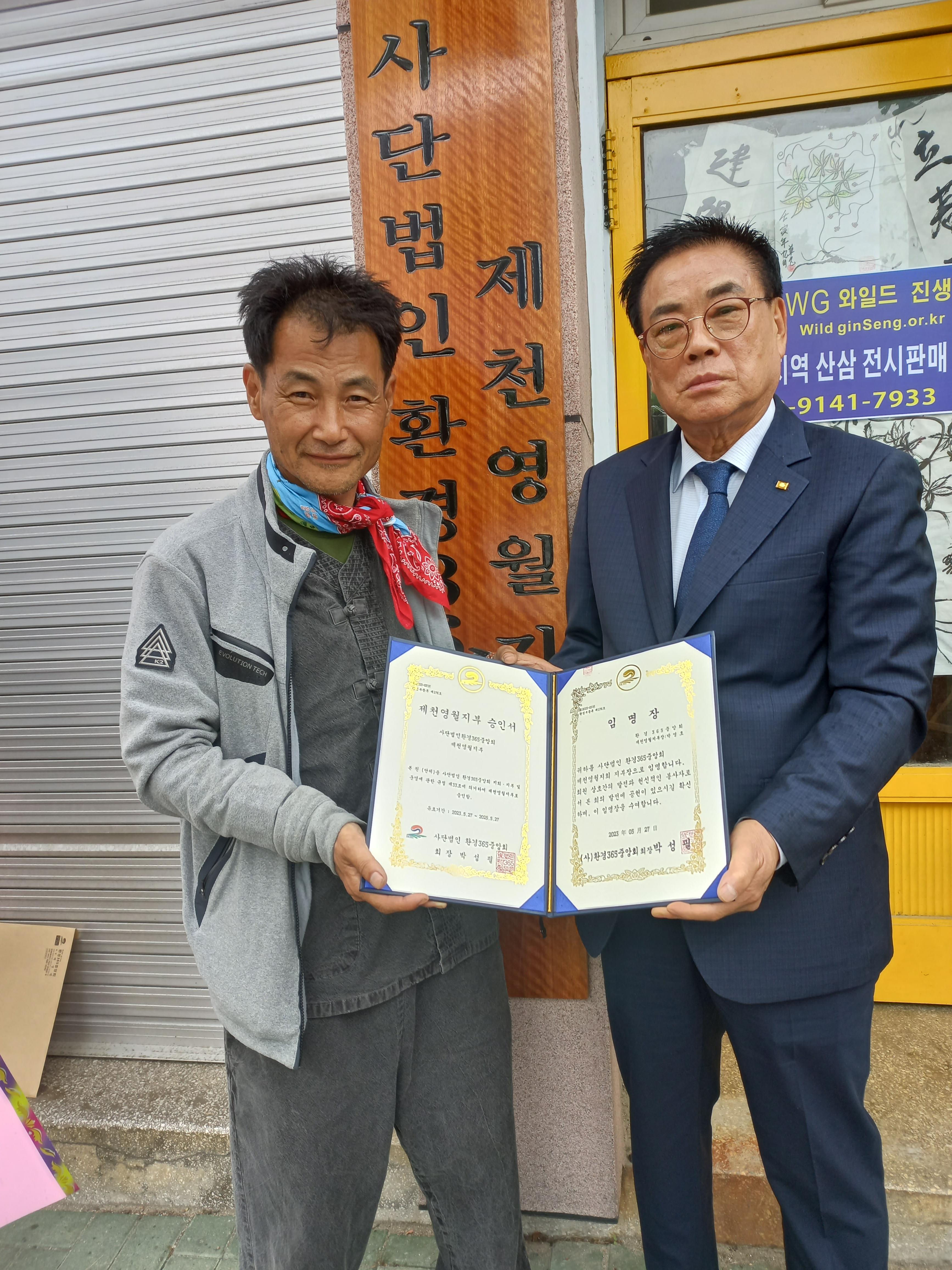 | 환경부 산하 사단법인 환경365중앙회 제천영월지부장 임명장 (0) | 2023.05.28 |