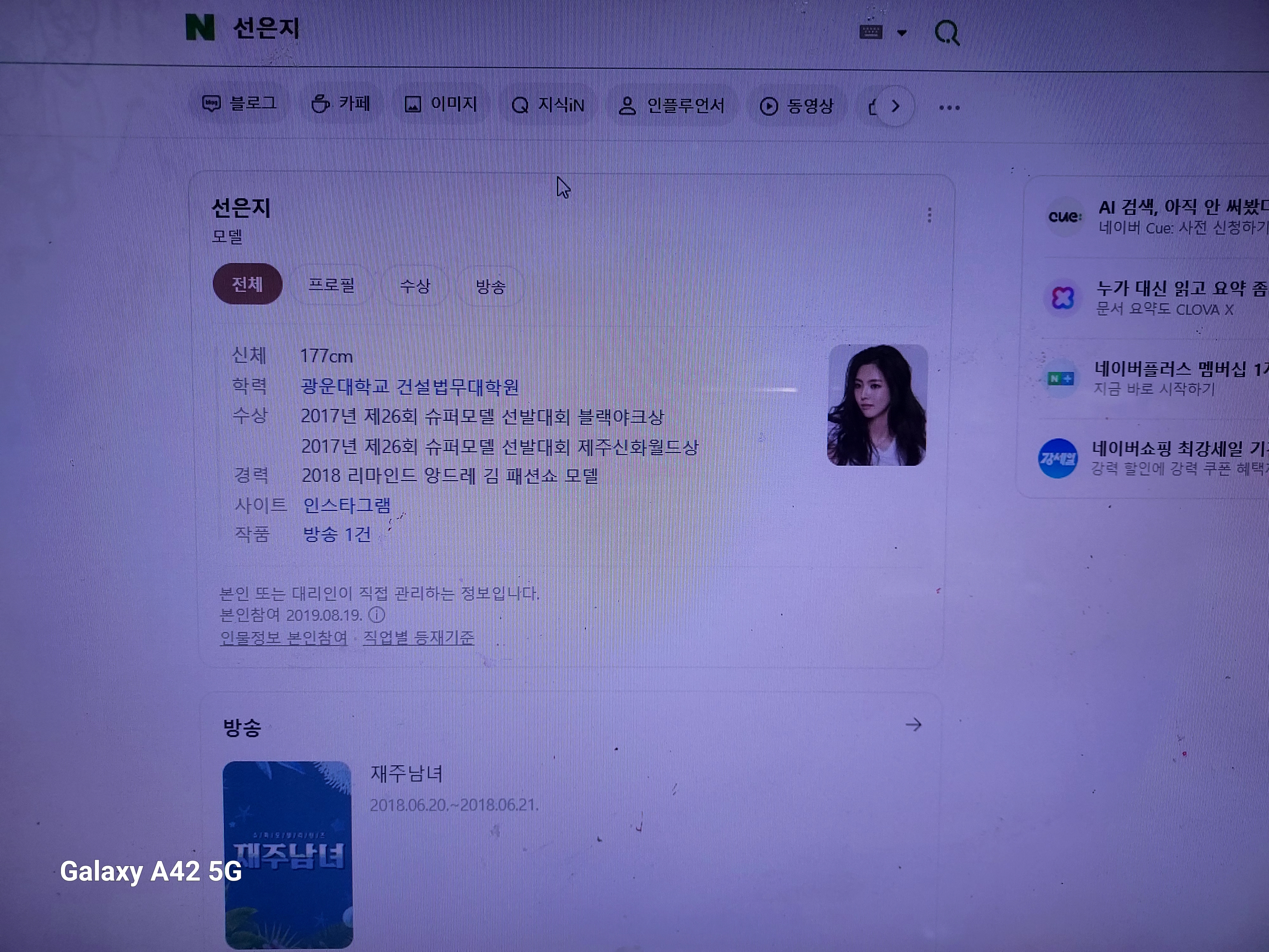 3대 산삼아가씨 선은지 네이버 검색 프로필